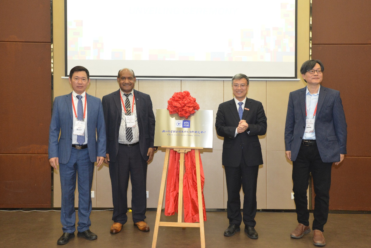开幕式结束后,徐小洲校长与联合国教科文组织代表、浙江大学领导为浙江大学联合国教科文组织研究中心揭牌。