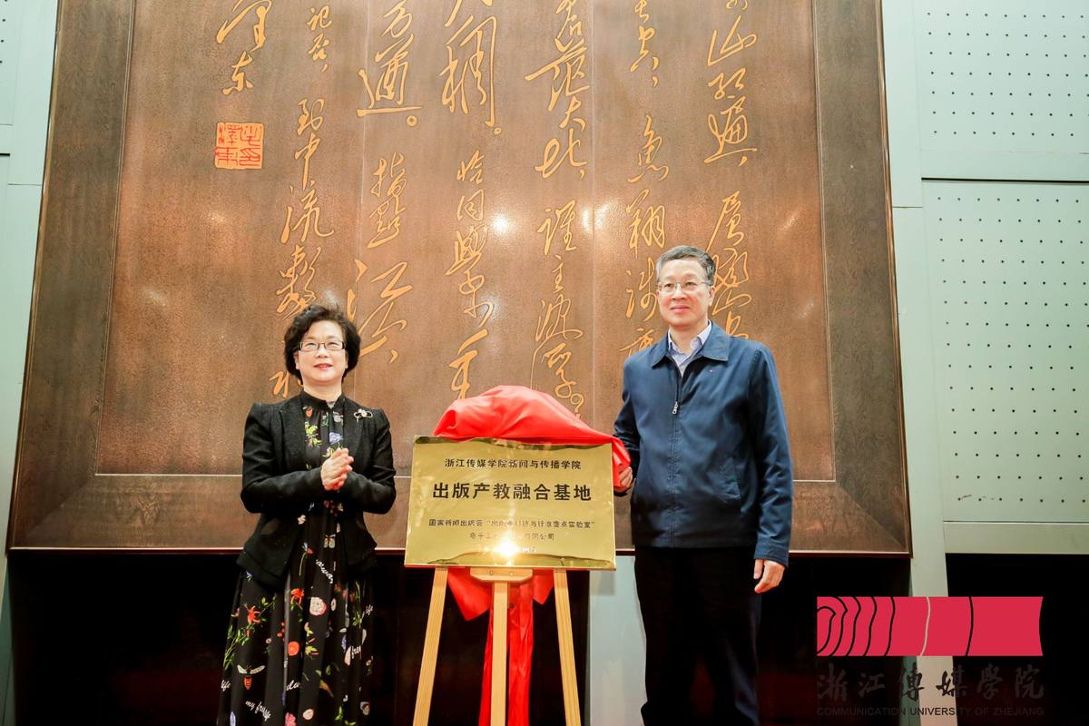 在热烈的掌声中,王传臣和杨立平为电子工业出版社-av動漫“出版产教融合基地”揭牌。