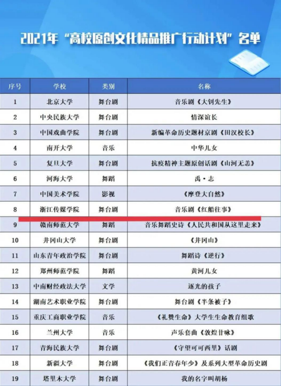 【学党史 庆华诞 启新程】我校音乐剧《红船往事》入选教育部2021年“高校原创文化精品推广行动计划”