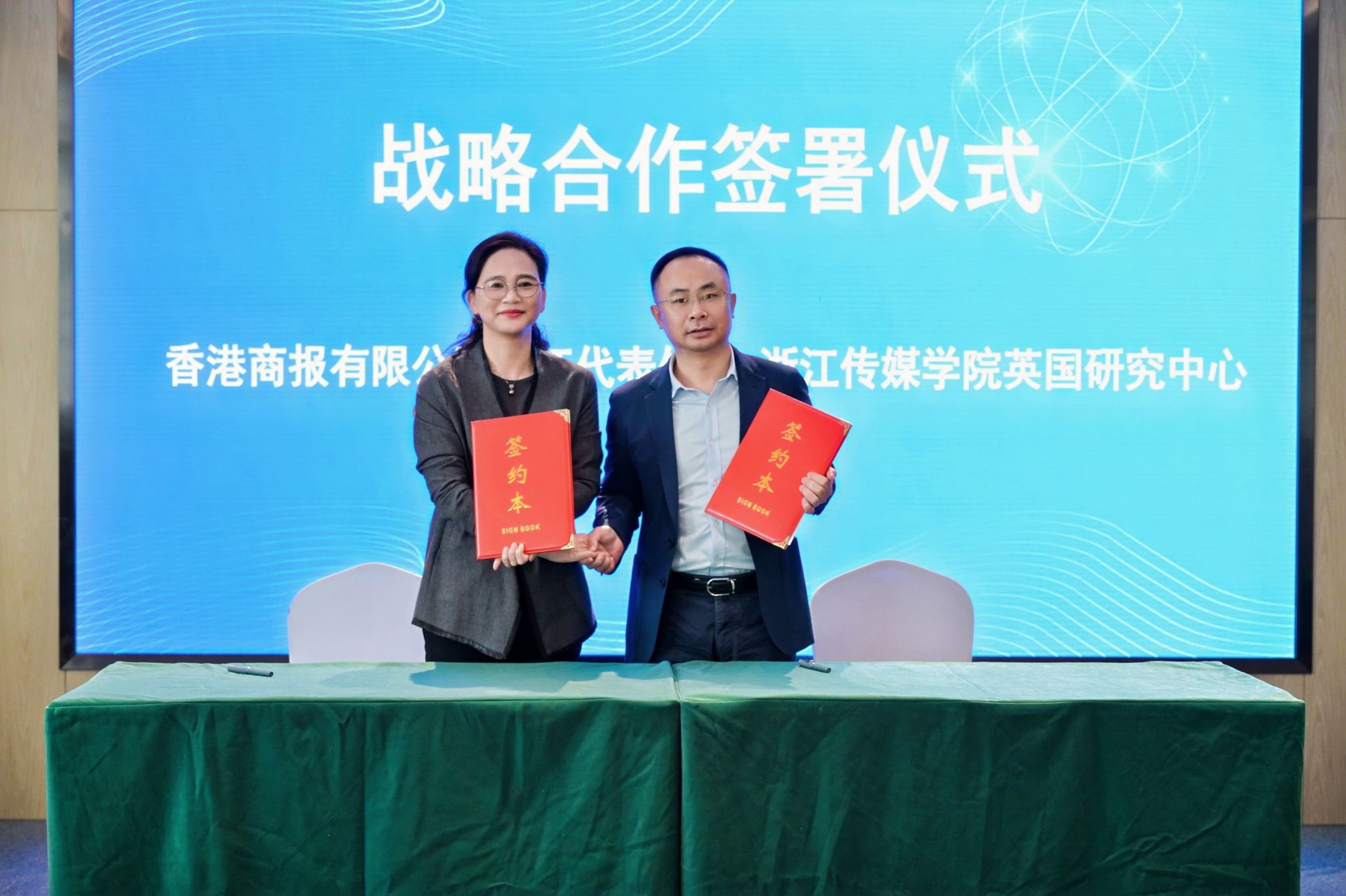开幕式上,香港商报有限公司浙江代表处首席代表谢国平与国际文化传播学院党委书记陈斌现场签署了战略合作协议,双方在国际传播实务与研究领域的深度合作正式启动。