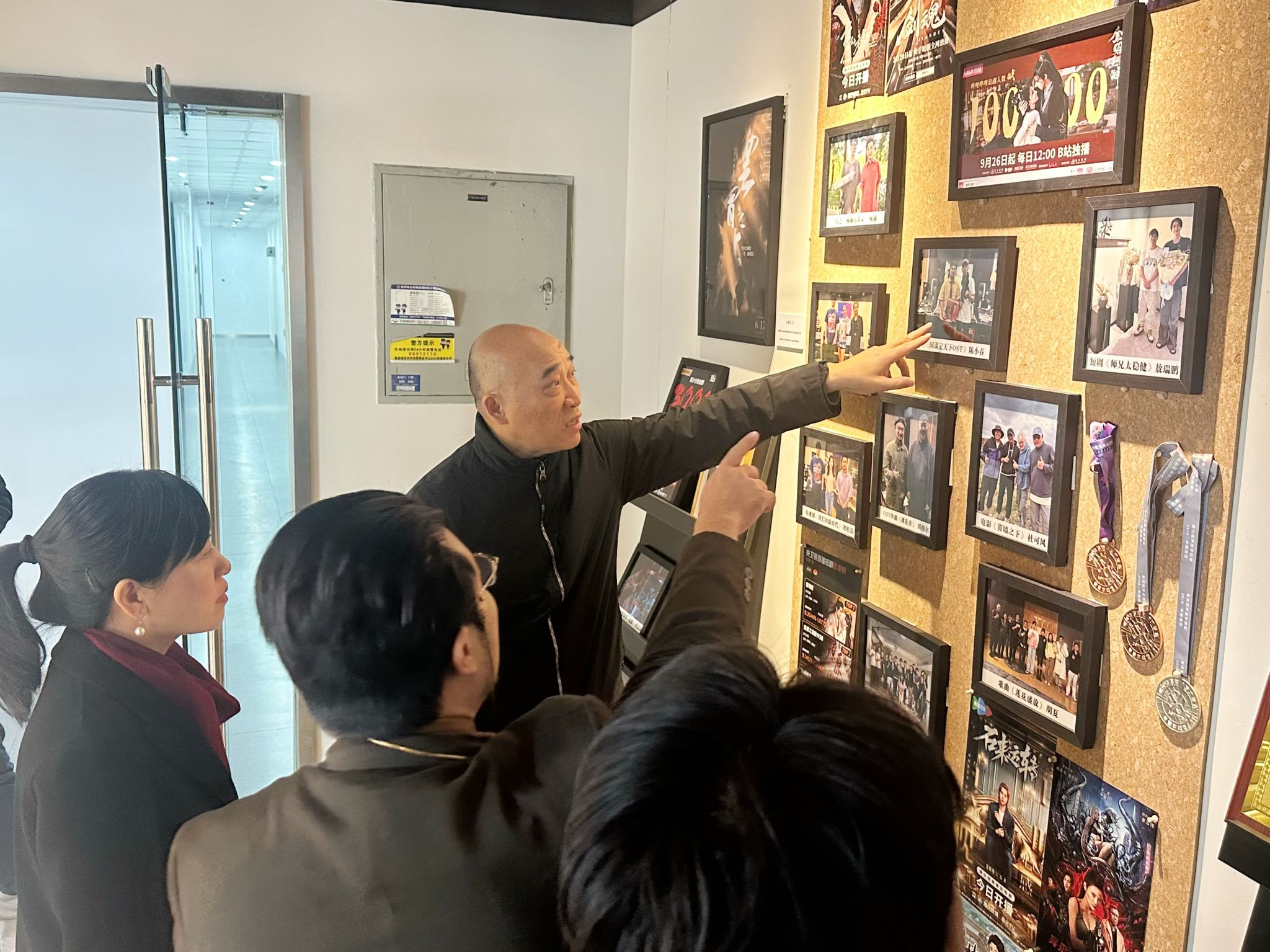 随后,徐伟标一行走访了杭州山禾北人文化传媒有限公司,公司由2014级录音艺术专业校友贝乐创立,曾为《二十四号大街》《云霄之上》《我有无数个好兄弟》等多部获奖影片提供声音设计与制作。徐伟标实地参观了公司的录音棚、控制室等专业设施,听取了关于企业团队建设、业务拓展情况的介绍,并详细了解了公司在影视、游戏、融媒体等板块的业务布局。他对公司在影视声音设计领域取得的成就表示赞赏,希望团队能够继续发挥专业优势,加强与学校在产学研、就业实习等方面的合作,共同探索声音设计领域的新技术、新方法。