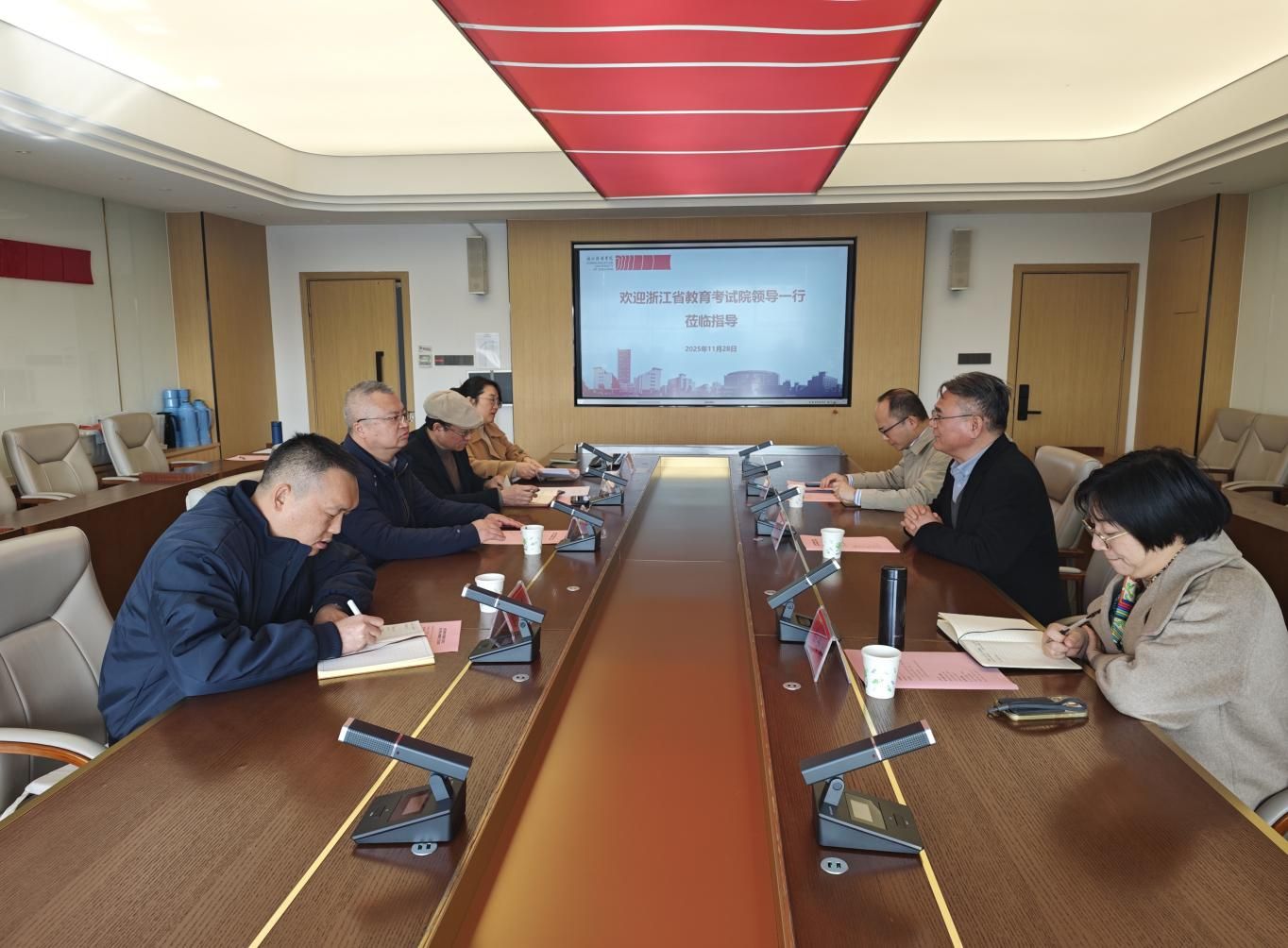 11月28日上午,浙江省教育考试院院长徐继彬,高校招生二部主任卓奕源、办公室副主任余丹茜一行,来我校调研指导硕士研究生招生考试自命题工作。副校长姚争,研究生院、招生工作办公室负责人参加座谈会。