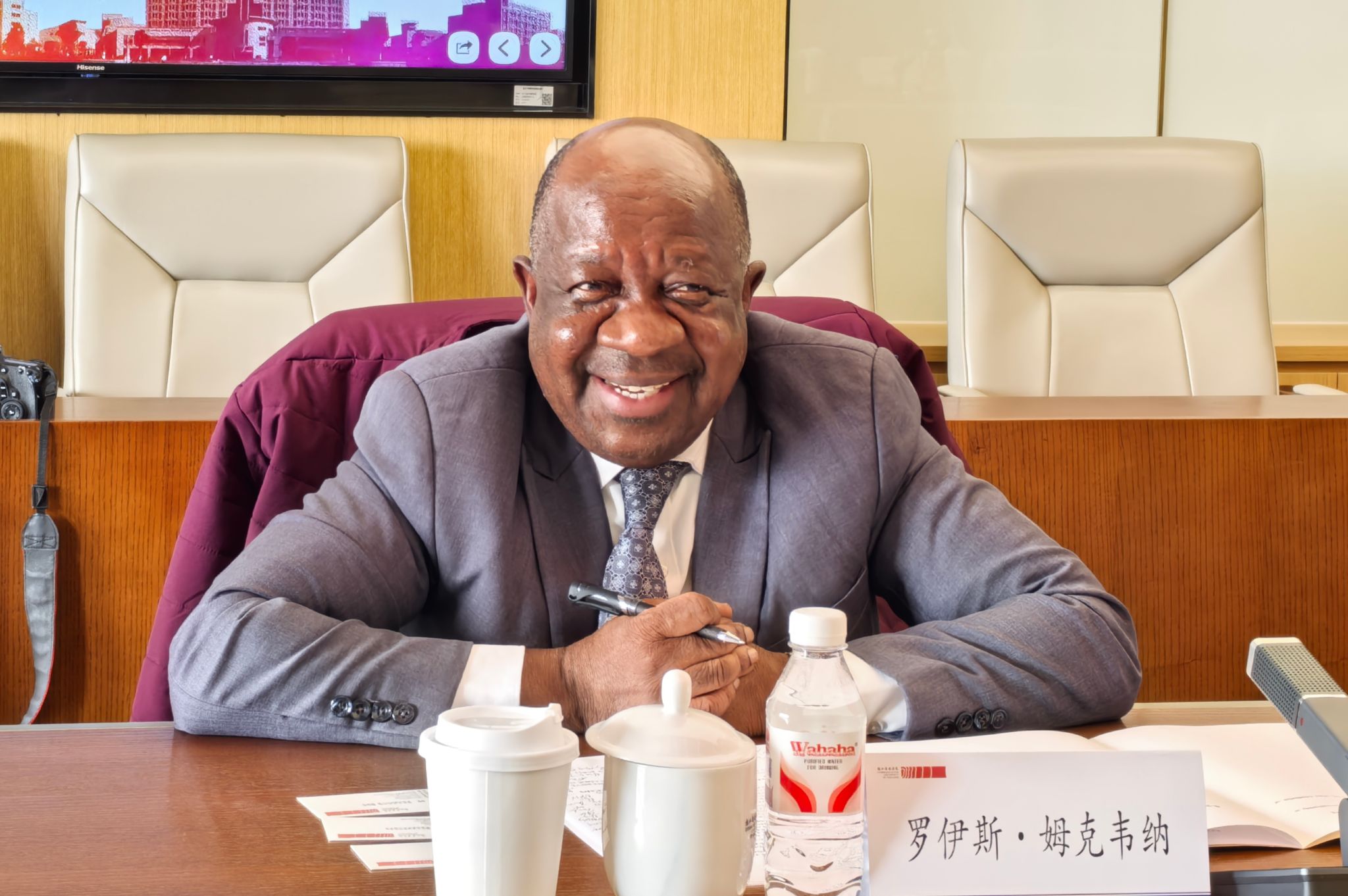 罗伊斯·姆克韦纳对我校的接待表示感谢,并表达了进一步深化合作的意愿。他表示,穆伦古希大学高度重视人工智能领域的教育与研究,期待与我校共同推进孔子学院建设,并在联合研究、师生交流、多语言教育平台等方面开展务实合作。
