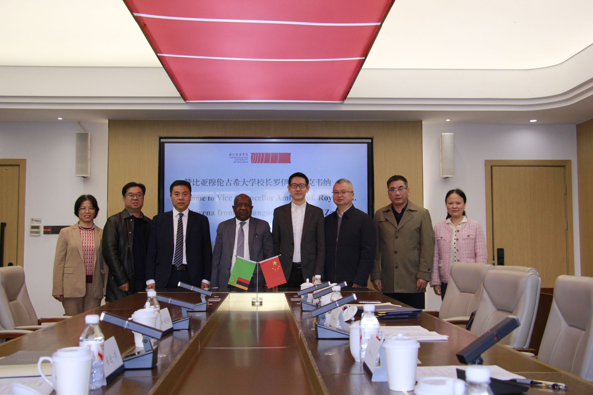 12月3日,赞比亚穆伦古希大学校长罗伊斯·姆克韦纳一行来访我校。校长韦路和副校长姚争分别会见代表团一行,校国际交流合作处、媒体工程学院、国际教育学院等相关单位负责人参加了会谈。