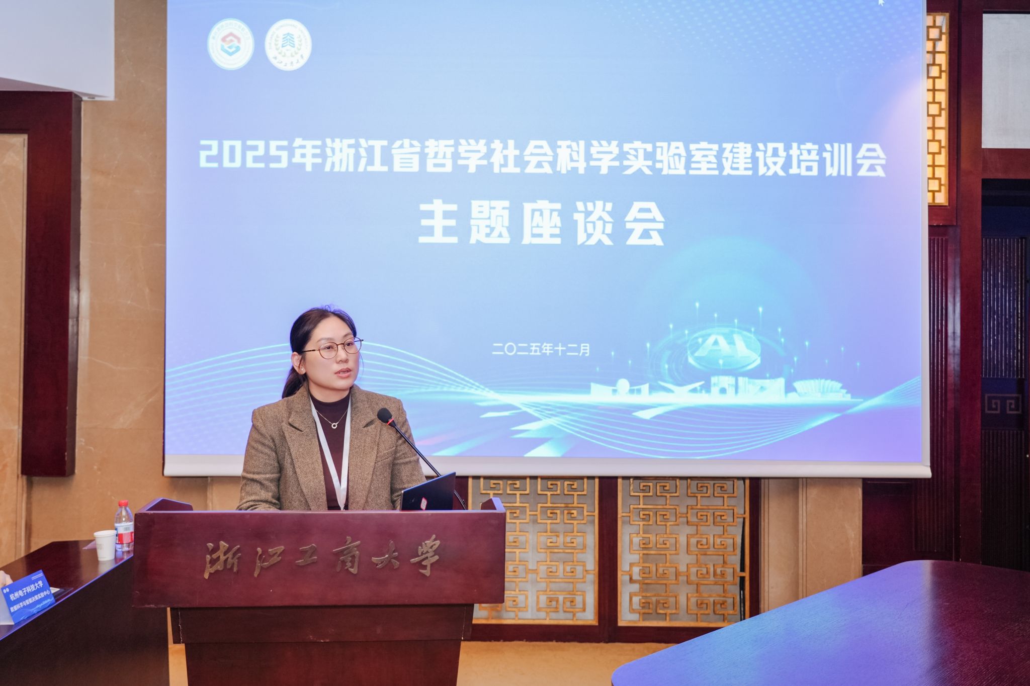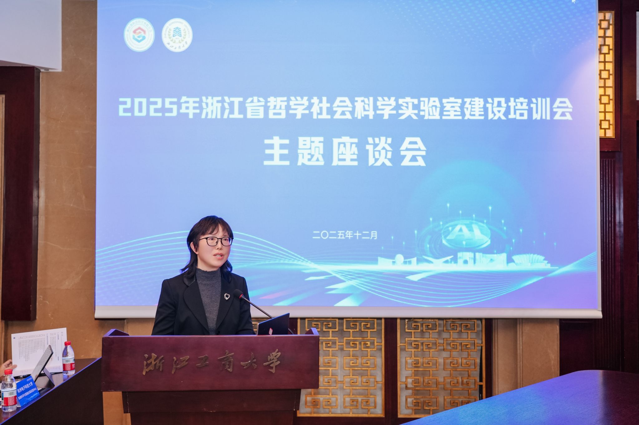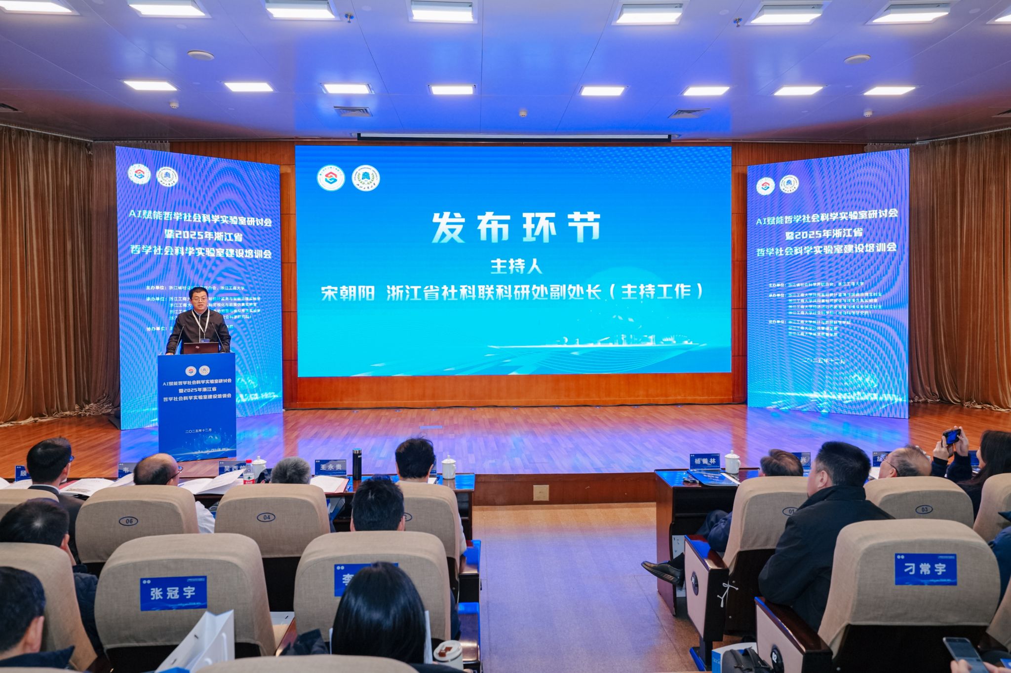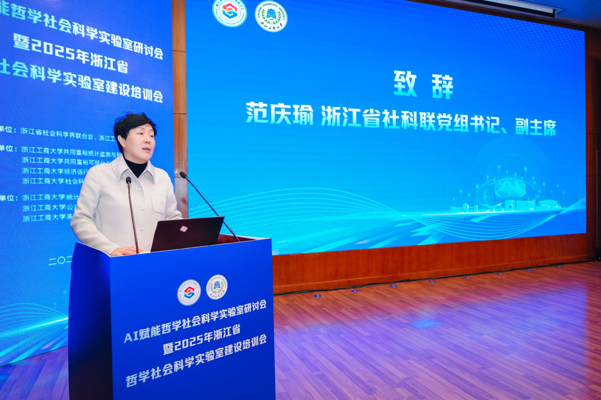12月25日,由浙江省社会科学界联合会主办的AI赋能哲学社会科学实验室研讨会暨2025年浙江省哲学社会科学实验室建设培训会在浙江工商大学举行。来自全省学界、业界及相关管理部门的领导、国内知名专家学者齐聚一堂,共商浙江省哲学社会科学实验室建设路径级创新发展蓝图。我校校长韦路、副校长李文冰出席,人文社科与创作处处长黄寒冰、副处长陈怡,出版学院院长、实验室方向负责人崔波,实验室骨干研究员余波等参加会议。