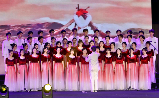 活动在校艺术团灵动的舞蹈《我们走在大路上》中拉开序幕,共分《献给历史》《献给祖国》《献给青春》三个篇章,从柔美委婉的《南泥湾》到坚定有力的《太行山上》,从昂扬向上的《走向复兴》到大气磅礴的《不忘初心》,12个二级学院的同学们以合唱与舞蹈形式,演绎经典红色旋律,引导广大师生在歌声中感悟党史,在律动中坚定信仰。