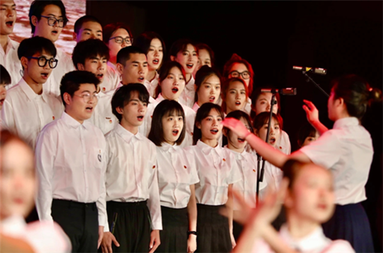 活动现场,同学们边挥舞着手中的国旗,边放声歌唱,引发台下观众齐唱互动,现场氛围热烈,同学们纷纷表示:“在五四青年节前举办这个活动很有意义,希望用我们的歌声为建党百年献礼,不断彰显青春风采。”