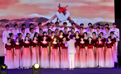 从柔美委婉的《南泥湾》到坚定有力的《太行山上》,从昂扬向上的《走向复兴》到大气磅礴的《不忘初心》,12个二级学院的同学们以合唱与舞蹈形式,演绎经典红色旋律,引导广大师生在歌声中感悟党史,在律动中坚定信仰。