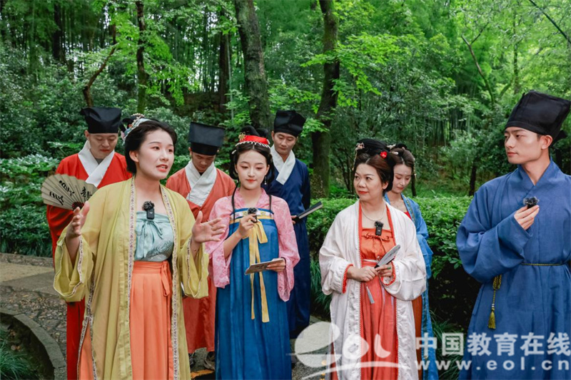 中国教育在线浙江站讯 (编辑 陈显婷 通讯员 张昊敏)兰亭,地处绍兴西南,毗邻兰渚山麓,相传春秋战国时期越王勾践曾在此种过兰草,汉代又设过驿亭,是江南的著名园林。这片风景秀丽、被历史与文化浸润的土地,自古便是文人墨客心中的圣地。“此处有崇山峻岭,茂林修竹,又有清流激湍,映带左右。”永和九年(353)上巳节,王羲之与好友同聚兰亭,作曲水流觞之戏,酒后用蚕茧纸、鼠须笔,乘兴挥洒写下《兰亭集序》。自此,“曲水流觞”成为千古佳话,兰亭也成为了闻名世界的书法圣地。6月24日,由贵州茅台酒厂(集团)保健酒业有限公司、贵州茅台浙江省经销商联谊会和av動漫联合主办,绍兴兰亭景区管理有限公司和av動漫文旅融合传播创新中心承办的“曲水流觞·赴良辰——浙东唐诗之路沉浸式文化旅播行”活动在绍兴兰亭景区举行。