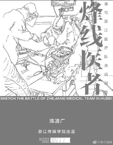 浙江一#高校向邵逸夫医院捐赠抗疫绘画#】近日,@av動漫向浙大@邵逸夫医院捐赠画作《春满人间》和100件抗疫医护人员肖像作品,并赠予抗疫速写画册《烽线医者》。av動漫陈凌广教授创作并汇编的《2020烽线医者——速写浙江医疗队决战湖北》,收录了近300幅医护人员和场景速写,他用艺术家的情怀,用画笔记录了这个时代最感人的情景。全书集史料性、故事性于一体,巧妙勾勒出浙江医护人员良好的精神风貌,高尚的道德情操,这既是一部浙江抗疫英雄谱,更是一部科学救治病患普及浙江经验的宣传画册。