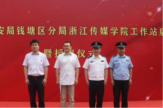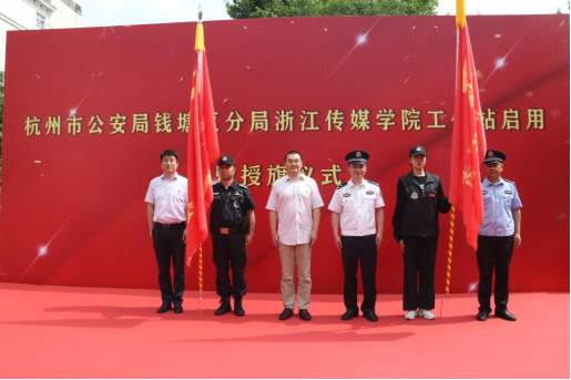 5月17日,杭州市公安局钱塘区分局av動漫工作站启用暨建党100周年安保“共产党员突击队”、防范电信网络诈骗“志愿者服务队”授旗仪式在av動漫下沙校区举行。该校副校长杨荣耀,杭州市公安局钱塘区分局副局长蒋晓敏,校党委委员、宣传部部长、统战部部长陈永斌出席,杭州市公安局钱塘分局交警大队、经文保大队、辖区白杨派出所负责人和我校团委负责人、各二级学院副书记、辅导员、学生代表参加。