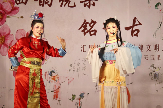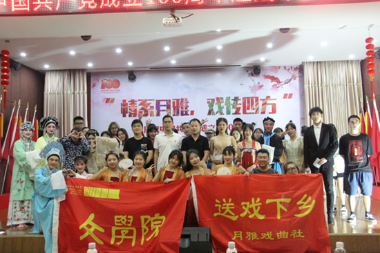 目前,该社团结合受众需求,积极进取、开拓创新,逐渐形成了以越剧为主,兼容昆曲、京剧、黄梅戏、豫剧、二人转、南音等其他剧种的演出格局。受“抗疫精神”感召,去年社团将戏曲与小品相结合,原创制作了剧目《“疫”心一意》。该剧本已获学校2020年度校级大学生创新基金项目重点资助立项,并在“庆祝中国共产党成立100周年”送戏下乡专场演出中精彩亮相,为村民送去欢声笑语的同时,也引发了共鸣与深思。