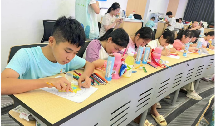 傍晚时分,随着夜幕降临,19点的曼陀罗绘画和冥想活动如期而至。通过罗兰老师的引导,营员们都顺利的完成了绘画,然后闭上眼睛,静静地聆听、感受。在绘画和冥想的引导下,他们逐渐放松了身心,收获了内心的平静与安宁。