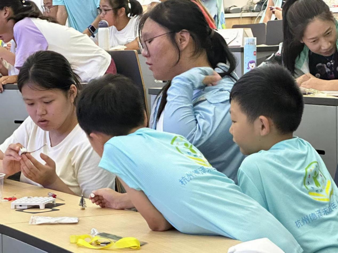10点钟,少年们变身为小小发明家,动手制作自己的小发明。在老师的指导下,他们发挥想象力,将给予的零件变废为宝,不仅锻炼了动手能力,也培养了创新和研究思维。