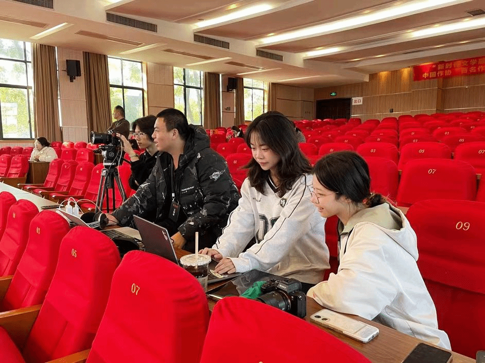 时间紧,任务重,当知道李洱、杨克、乔叶、陈人杰等两位茅盾文学奖获奖作家、三位鲁迅文学奖获奖作家将莅临学校与师生展开交流时,研创中心负责人范可正同学提出了一个请求:“我能不能给我的团队成员画个大饼,参与创作的同学可以获得与作家合影的机会?”