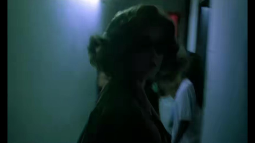 金发女的孤独从第一个镜头就开始体现,镜头跟随林青霞转过一个个人,这些人从外貌、穿着、肤色、神情等方面都与她不一样,摄像机总是会靠近这些人的脸,我们可以将其抽象地看作进入一个人内心的过程,可当镜头从背后靠近金发女时却被她转头盯住了,镜头不动了,她才回过头继续前进,我认为这是她在抗拒他人进入自己的内心,在片名出现前拉上帘子的声音也是同样的体现。镜头的摇晃,急促的音乐,无一不是她内心不安全感的外化。这点在之后的自白中体现得尤为明显——“不知从什么时候开始,我变成一个很小心的人。每次穿雨衣,我都会戴太阳眼镜,你永远都不知道什么时候会下雨,什么时候会出太阳。”这句看起来很可笑的话,却是金发女内心最真实的写照。