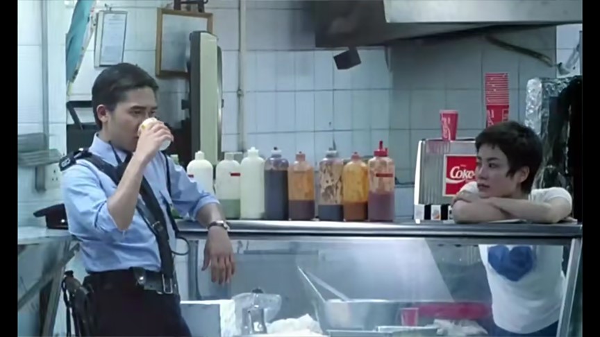 警察633跟阿菲的故事较为简单,在引入这第二个故事时导演已借何志武的口加以明示了:阿菲爱上了633。有许多小细节也体现了这点,比如阿菲常常在干活时偷瞄633。