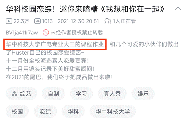 “当知识不再困于课本,才能发挥出真正的力量。”大学作为年轻人步入社会的过渡期,自然更需要敢闯敢造的勇气,掌握多样本领技能。更何况部分校园恋综起源于作业,也正是当下高校教学中学术与实践相结合的表现。武汉大学自制恋综《我想认识你》的导演曹天宜,正是凭借这一作品在专业课取得最高分。创新和创造不该囿于书本和课堂,活跃的思想、正确的恋爱观也可以成为我们推崇和提倡的风向。