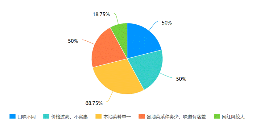 一般情况下,人们对于美食荒漠的评判主要基于①同等价位下食物味道如何,即是否物美价廉。②对食物的品质要求是否较高,对烹饪是否上心。③菜品口味是否单一。④当地菜品与其他地区菜品相似度的高低,即当地菜品有无特殊性。根据我们的调查显示,有近7成人认为杭州是美食荒漠的原因是当地菜肴单一,而口味不同、价格过高与味道有落差是其他三个重要原因。