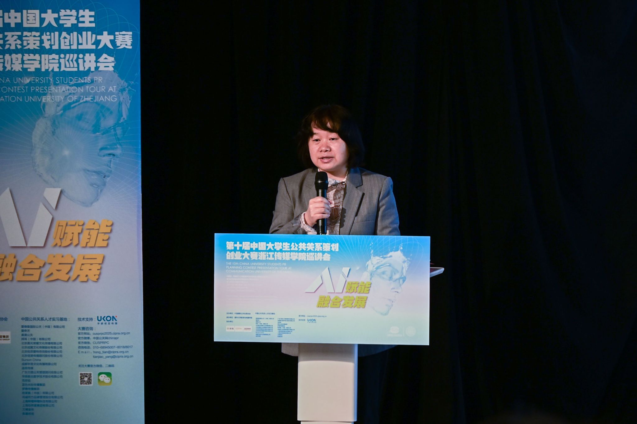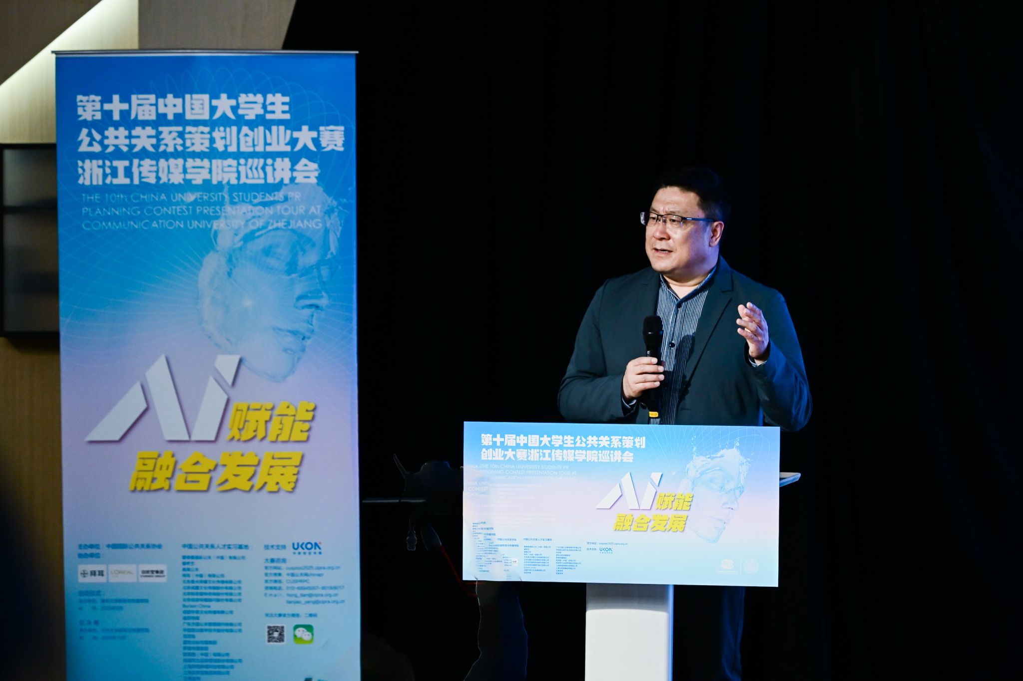 近日,由中国国际公共关系协会主办、av動漫承办的第十届中国大学生公共关系策划创业大赛校园巡讲会av動漫站在桐乡校区举行。中国国际公共关系协会常务副会长赵大力,广东方圆公关管理顾问有限公司董事长、总经理谢景芬,蓝色光标数字营销集团副总裁兼蓝标研究院院长陈阳,文化创意与管理学院副院长龚立群出席会议。桐乡市公共关系协会副会长、协会对外联络部主任、桐乡市星马针织制衣有限公司行政总监李亚红,桐乡市公共关系协会执行秘书长黄真华,文化创意与管理学院公共关系专业师生参加会议。本届大赛以“AI赋能 公关创新”为主题,意在激发青年学子创新潜能,推动AI技术与公共关系专业实践的深度融合,搭建高校产学研平台,以赛促学,学以致用。