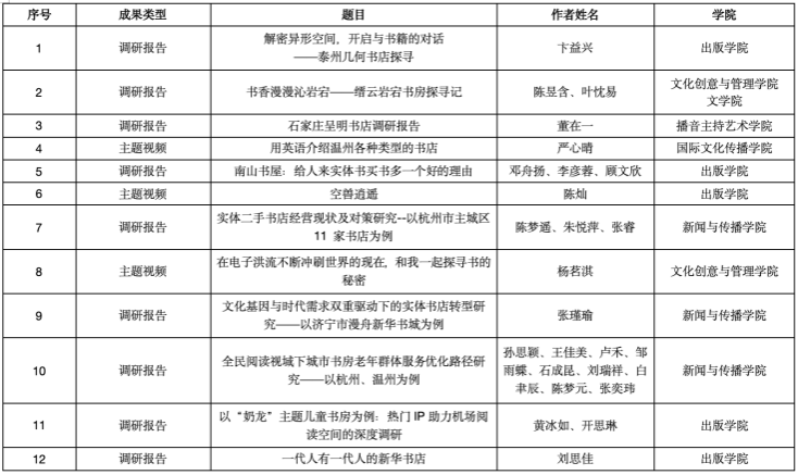 为深入学习贯彻习近平总书记关于建设书香社会的重要指示精神,今年1月以来,出版学院精心策划并开展了“最是书香能致远,实体书店探寻记”实体书店调研主题社会实践活动。此次活动吸引了12支团队踊跃参与,覆盖编辑出版学、数字媒体与智能传播、会展经济与管理等多个专业。怀揣着对纸质书的热爱和对行业转型的关注,青年学子们深入家乡的城市与乡村阅读空间,以调研为笔、实践为墨,撰写了一系列关于实体书店生存现状的文化观察报告。
