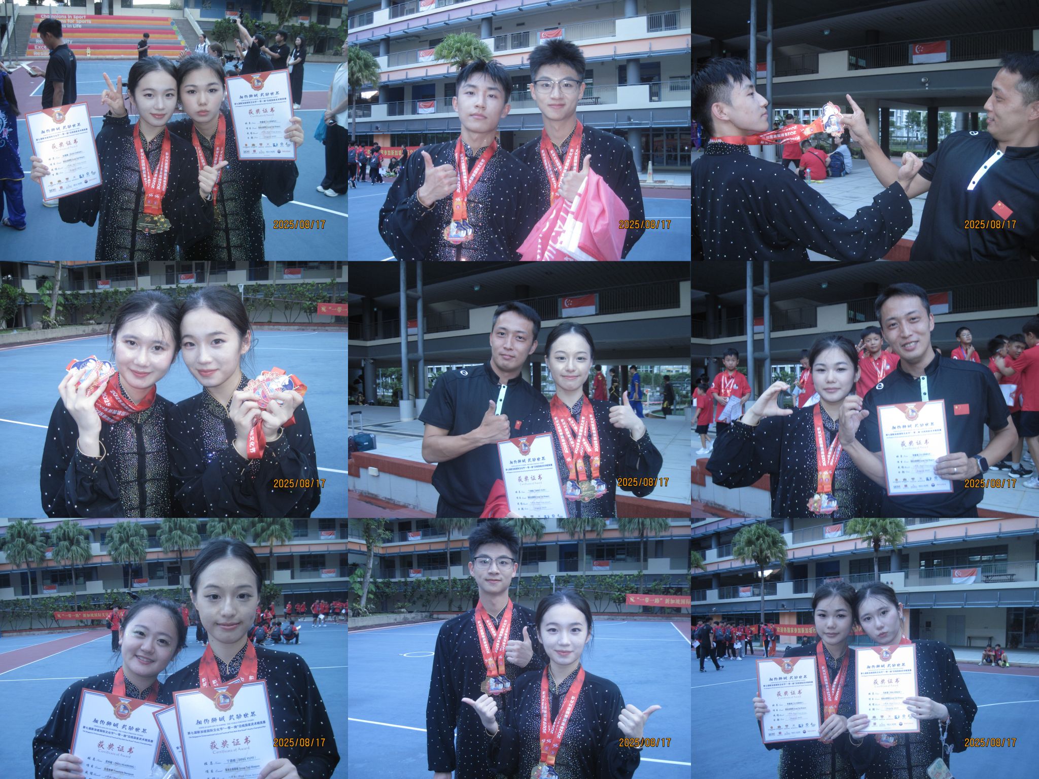 本次比赛中,我校派出的7名队员均在个人项目上有所斩获,并在集体太极器械项目上荣获一等奖。此外,我校武术队还荣获全球武术推广大奖,俞特老师被授予新加坡国际文化节武术项目推广大使。