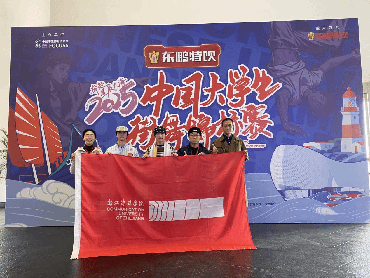 近日,由中国学生体育联合会主办的中国大学生街舞锦标赛在浙江舟山圆满收官。本次比赛汇聚了来自全国72所高校的1000余名选手同台竞技。我校街舞队在体育教学部直属党支部书记、副主任(主持工作)薛林峰领队,主教练张晓瑛老师的带领下,派出郭善治、祝元枭、高应寰三名核心队员参赛,最终勇夺Hiphop斗舞亚军、团体斗舞第四名,并跻身Popping斗舞八强,表现亮眼。