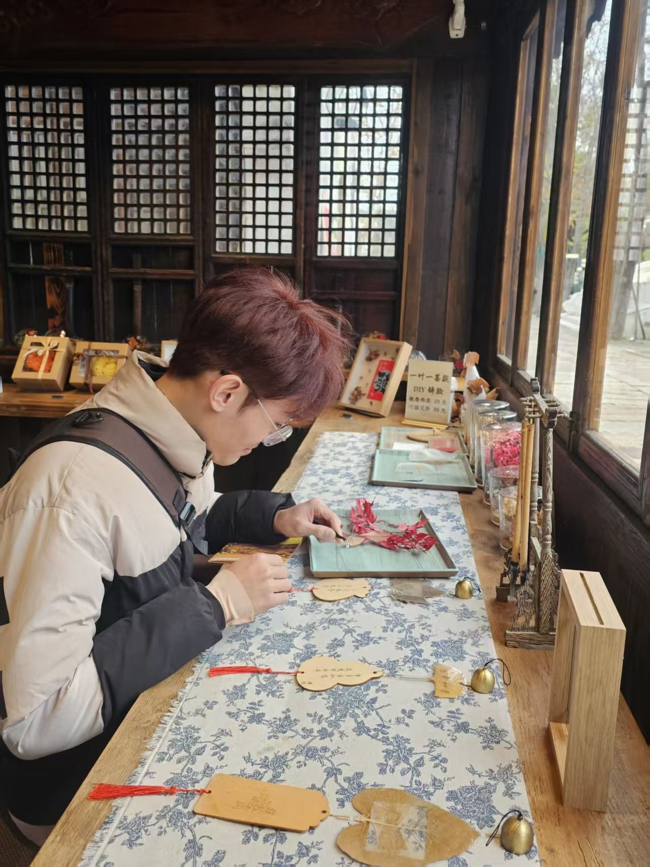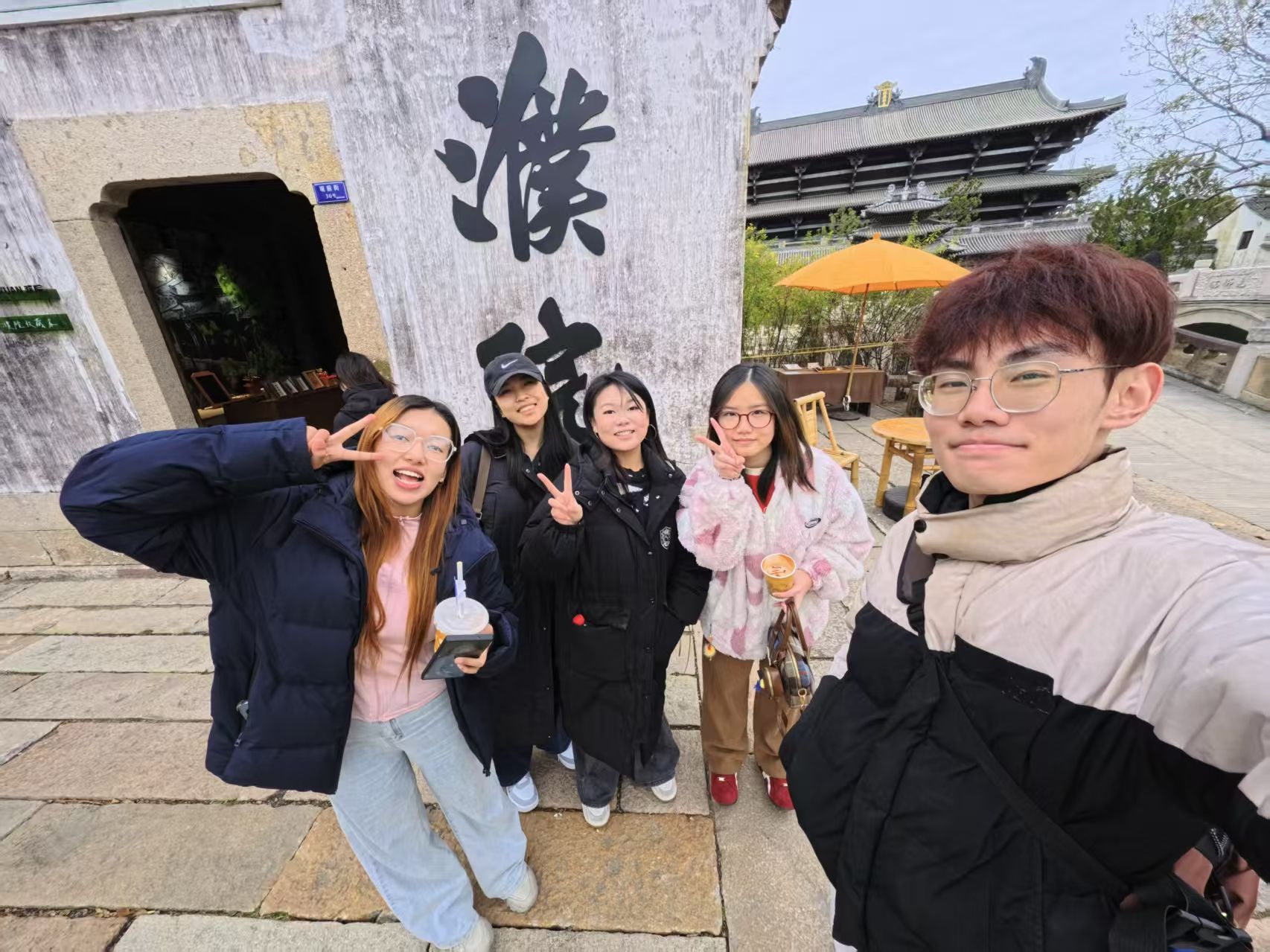 午后的阳光洒在濮院时尚古镇的青石板路上,粉墙黛瓦映着悠悠河水,别有一番江南韵味。结束了上午的脑力激荡,中外师生开启了惬意的古镇参观、摄影采风与文化体验之旅。