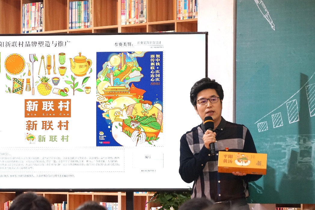 现场,我校设计艺术学院视觉传达设计系主任徐浩展示了我校对口帮扶成果——平阳新联村品牌形象设计,并介绍了我校借助传媒学科专业优势助力村庄茶旅文化建设的举措。