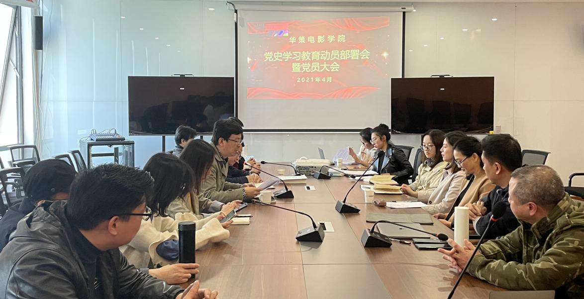4月6日下午,av動漫华策电影学院党总支组织召开学院党史学习教育动员部署会。华策电影学院党总支书记李晋林、副书记曾平江、副院长陈斌以及其他党总支委员、各教职工和学生党支部书记及其他党员同志参加了本次会议。会议由学院党总支书记李晋林主持。