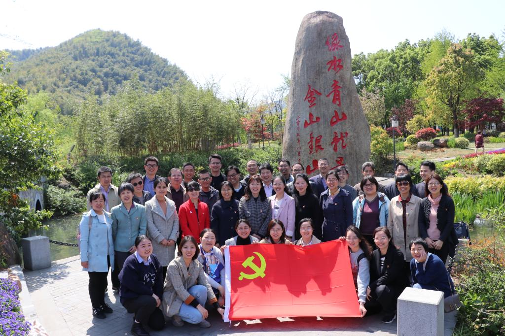 习近平总书记在浙江工作期间提出的“八八战略”是习近平新时代中国特色社会主义思想在浙江的探索与实践,蕴含着新发展理念的智慧,该思想源发于习近平任浙江省委书记时在安吉考察时提出的科学论断“绿水青山就是金山银山”。恰逢建党一百周年,我院教工党员前往安吉,深入余村,切实感受到“两山”思想巨大的理论力量和实践力量,进一步了解生态文明建设、走可持续发展道路的重要意义。参观中,老师们在余村村口镌刻着“绿水青山就是金山银山”的石碑面前合影留念。