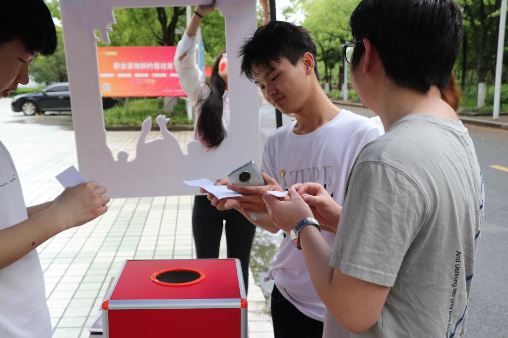 在传媒大道上,参与活动的青年学生依次在黑箱中抽取带有关于五四知识的题目,然后答题,重温五四运动的代表人物和历史故事。“青年说青春”以“青春永不停息”为主题,面向师生征集个人青春感悟。同学们以自身视角,在喷绘展板上写下青春寄语或对五四精神的理解与感悟。“青年五四情”活动中,多名同学手持kt板讲述五四运动历史故事。