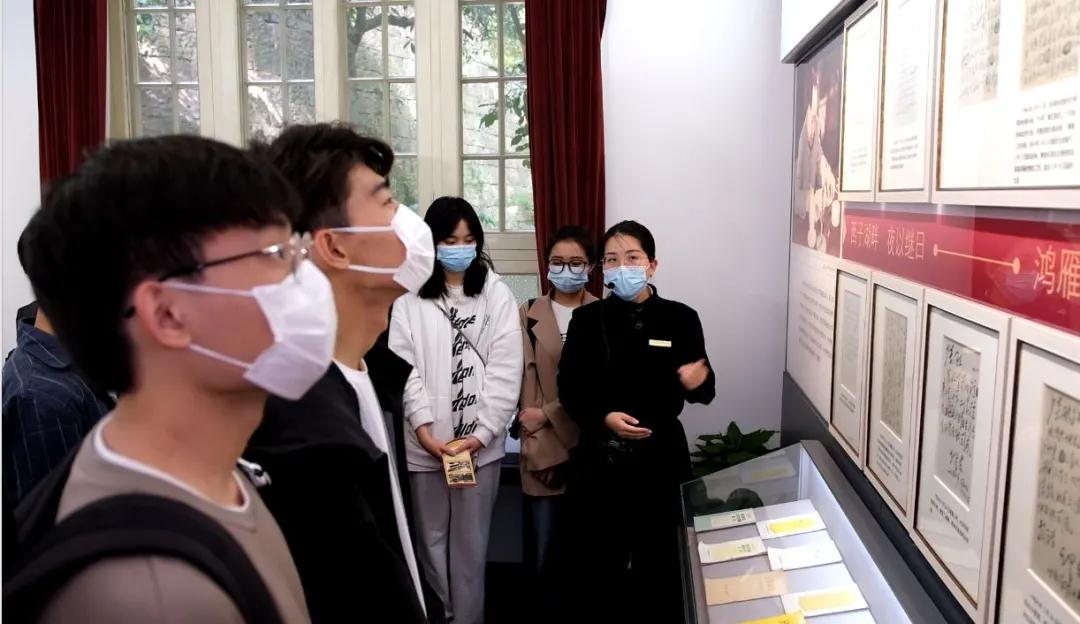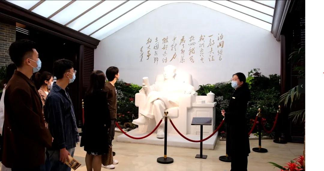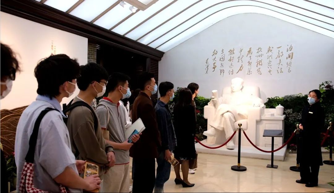 师生们认真聆听馆内讲解,毛主席当年起草宪法时的办公场景被细致地一一复原:象征着民族团结的瓷杯、毛主席爱用的6B铅笔、当年各个代表翻阅参考的他国宪法文本......置身于其间,同学们仿佛回到了六十七年前,与革命先辈们一起,纸笔间勾画着中华的未来。