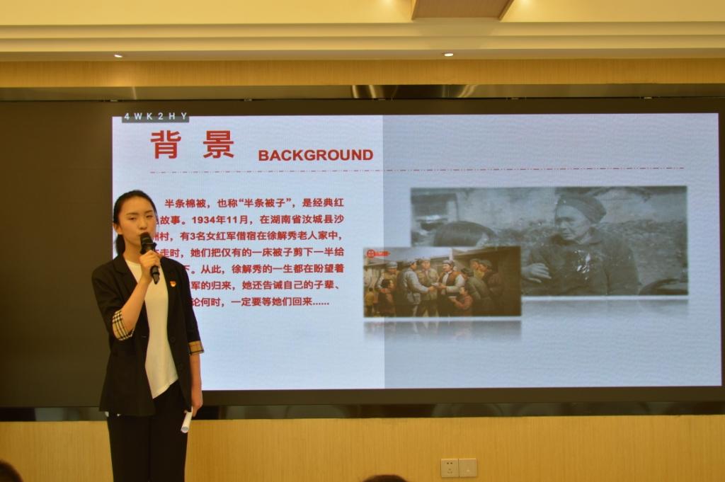 音乐学院教师陈琳结合自己参与大型音乐剧《红船往事》,并饰演了剧中的女主角——杨开慧的舞台经历,分享了她体会到的杨开慧在艰苦革命中坚守信念的奋斗精神,表达了爱国、爱党、爱校的热烈情感。