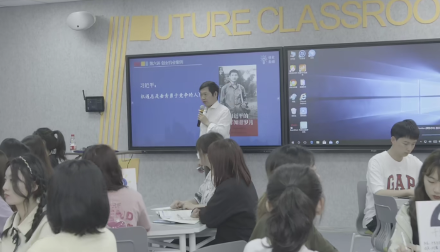 他以影片《一点就到家》为例,引导在座学生对影片中的创业人物和创业机会进行研讨。他表示,我们要把握创业的深刻内涵,创业包括商业创业、社会创业、政治创业等多个方面,但最重要的在于价值的创造。他指出,中国共产党的百年“创业史”正是一部把握社会时机、历史需求,创造社会价值的伟大创业史,而只有在中国共产党的带领下,中国人民才能把握时机,谱写壮丽史诗。