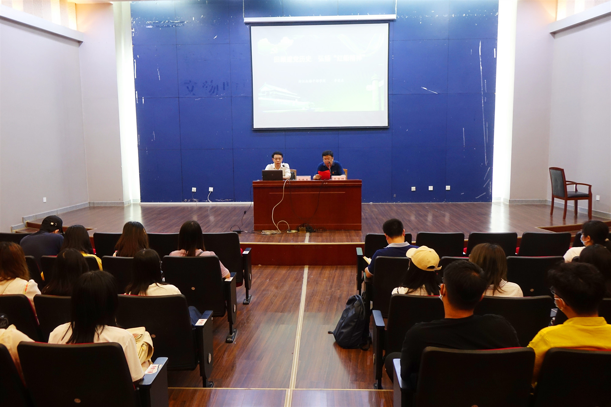 活动开始,由红船精神宣讲团成员、浙江红船干部学院教师李晓东博士主讲的党史学习教育专题党课,以“不忘初心、牢记使命——回顾建党历史 弘扬红船精神”为题,从“红船精神”的提炼、“红船精神”的孕育、“红船精神”的传承三个方面,通过丰富详实的史料和鞭辟入里的分析,生动阐述了“红船精神”的深刻内涵,让全体师生党员体悟到了党的初心。