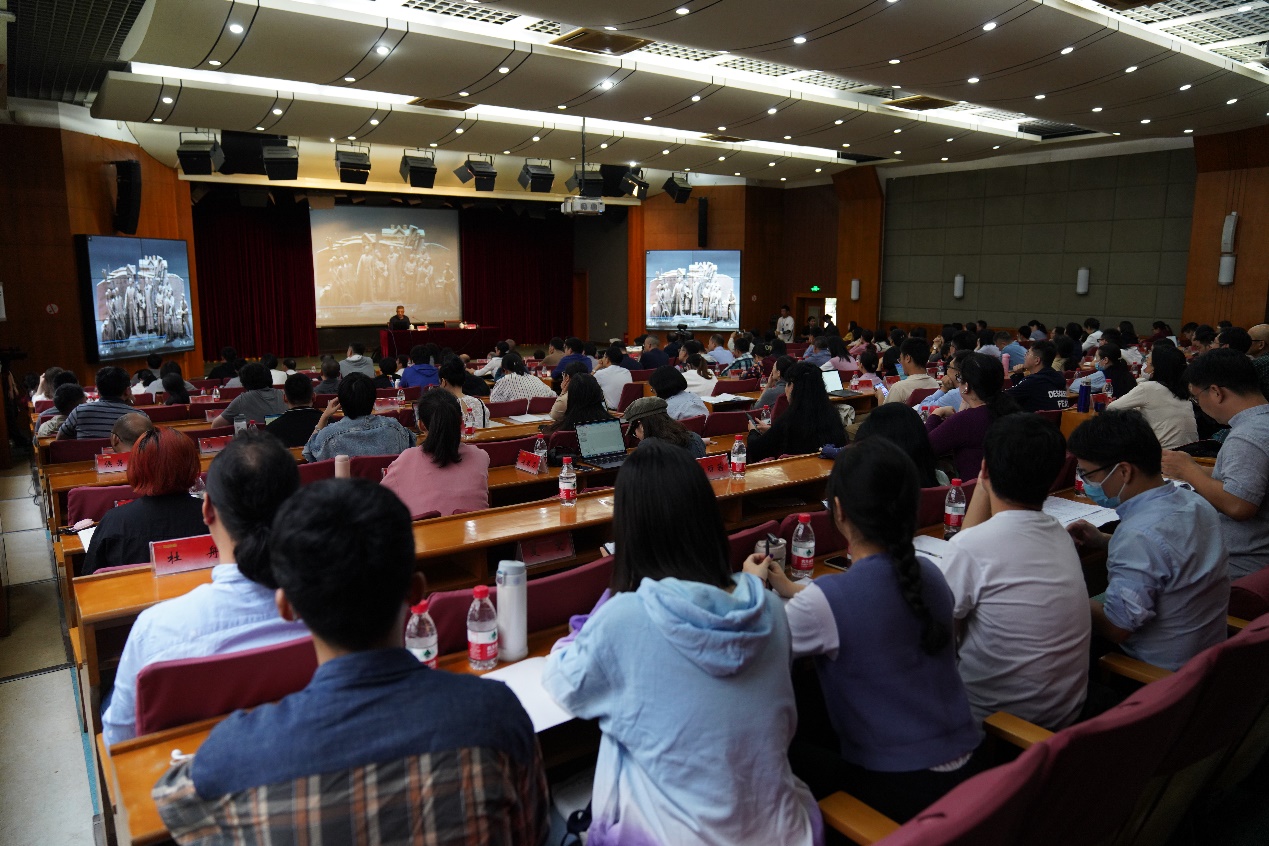 何红舟教授在报告中结合国家重大题材美术创作经历,通过一个个生动具体案例,为大家深入讲述了教师如何将专业教学与思政教育融为一体,在课堂育人过程中培养学生的艺术担当与家国情怀。他表示,创作要响应国家文化战略,助力中国文化发展。教师要深入时代与社会最前线,将德育与美育相结合、课程教学与创作相结合,履行育人使命,熔铸“人民之心”:一是教师要引导学生在现实生活中进行文化考察,在艺术创作中融入国家生活和时代变迁。二是注重课程思政育人的三个层次,培养学生“有我”“无我”和“大我”意识。三是注重师生团队的集体创作,使研创与教学互为一体,实现人才梯队建设与青年人才培养的互补。