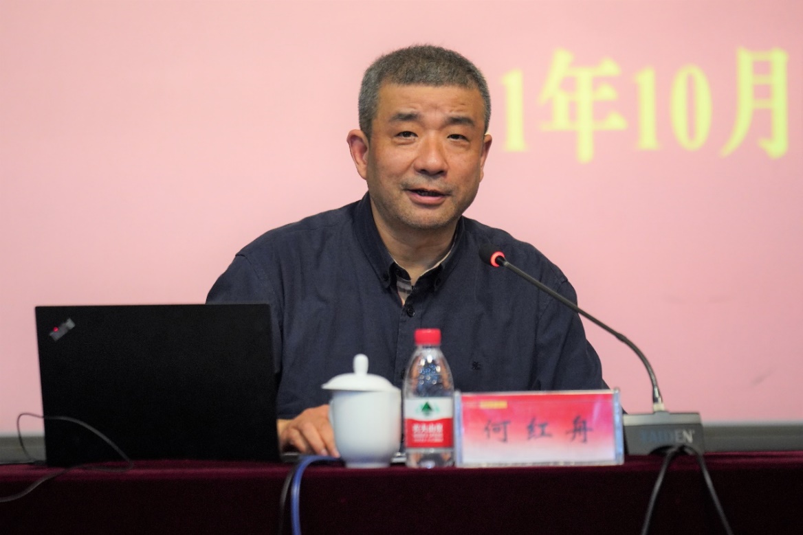 会议邀请中国美术学院绘画艺术学院院长何红舟教授来我校作题为《教学有道铸魂育人——谈教师在教学研创中的引领作用》的辅导报告。校党委书记杨立平等校党委理论学习中心组成员、二级党组织书记、二级学院院长、机关党委各支部书记、相关职能部门负责人、科创机构和二级学院教师代表参加,会议由校党委副书记宣裕方主持。