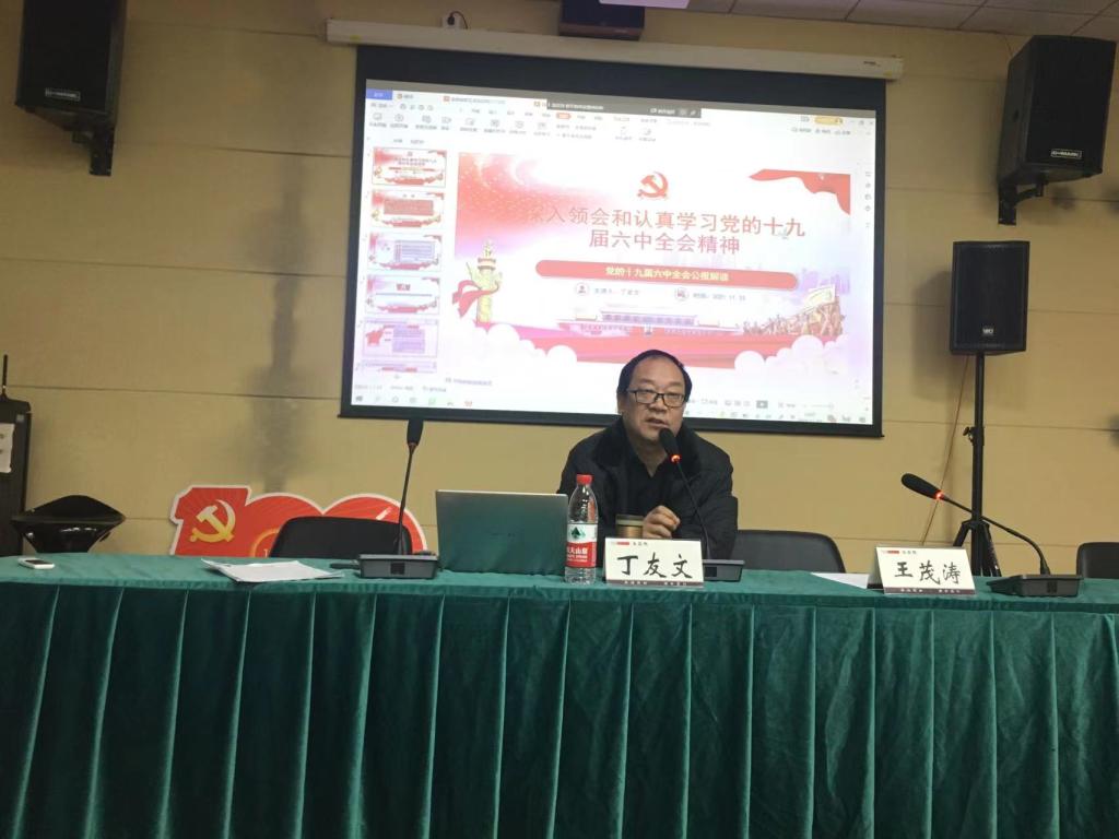 丁友文从深入领会总结党的百年成就和经验、系统把握中国共产党百年奋斗的四个重大成就、深刻认识中国共产党百年奋斗的五大历史影响、全面领悟中国共产党百年奋斗的十条历史经验等四个方面就十九届六中全会精神、党的百年奋斗重大成就和历史经验进行了详细解读。