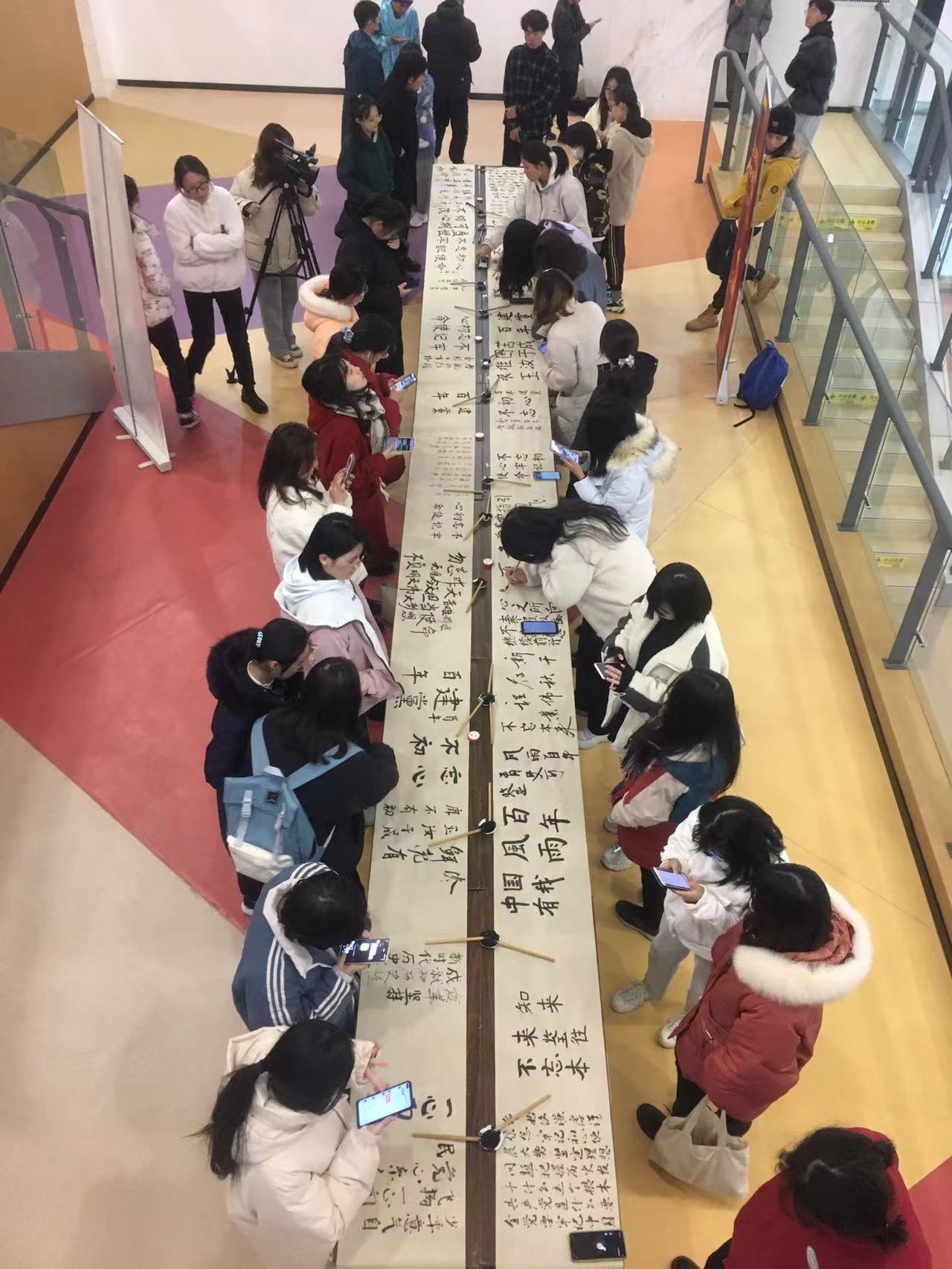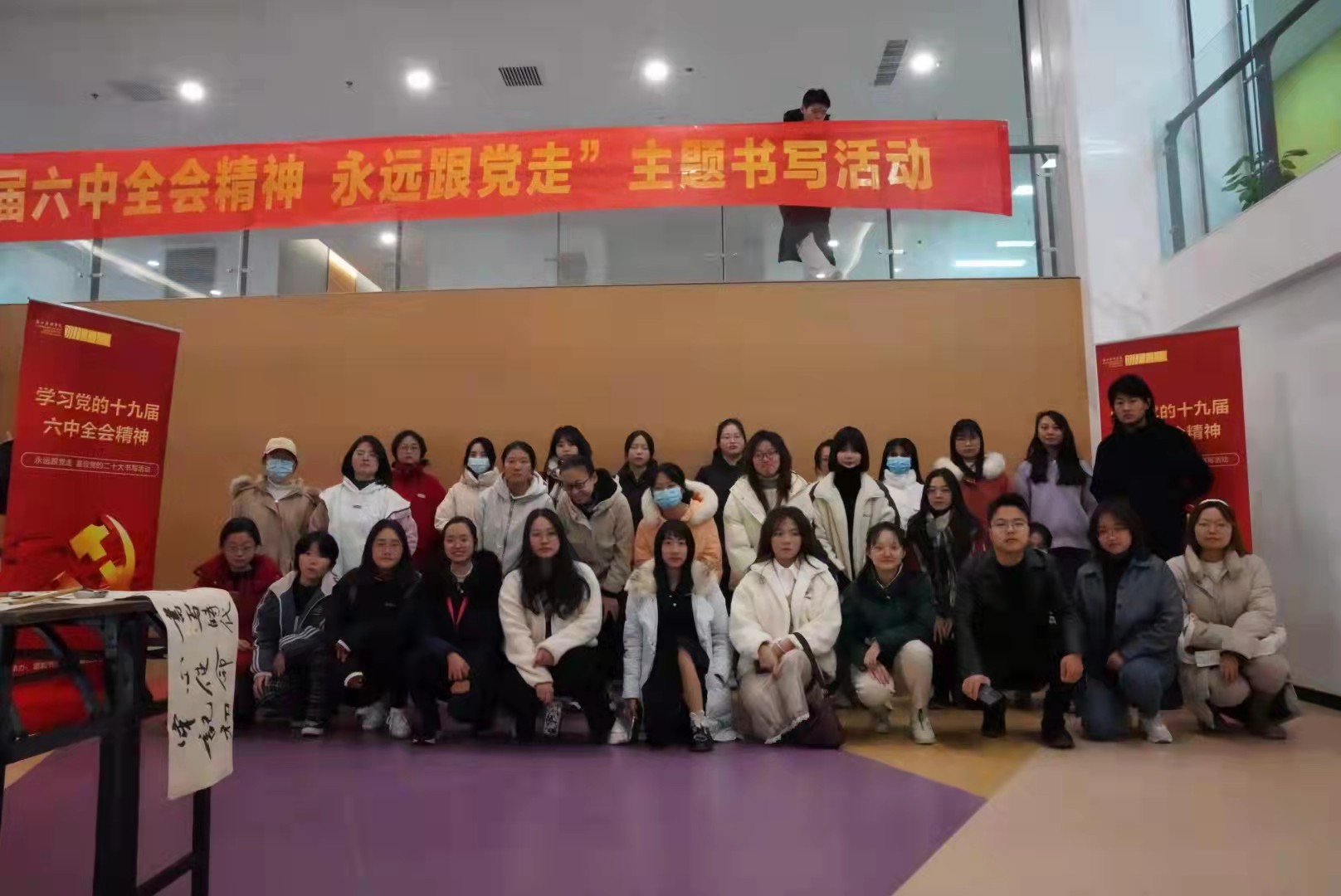 11月23日,文学院汉语言文学学生党支部和校级社团墨韵书法社在桐乡校区联合开展“学习十九届六中全会精神 永远跟党走”主题书写活动,学生党员、共青团员们以书法形式讴歌建党百年,抒发爱国情怀。