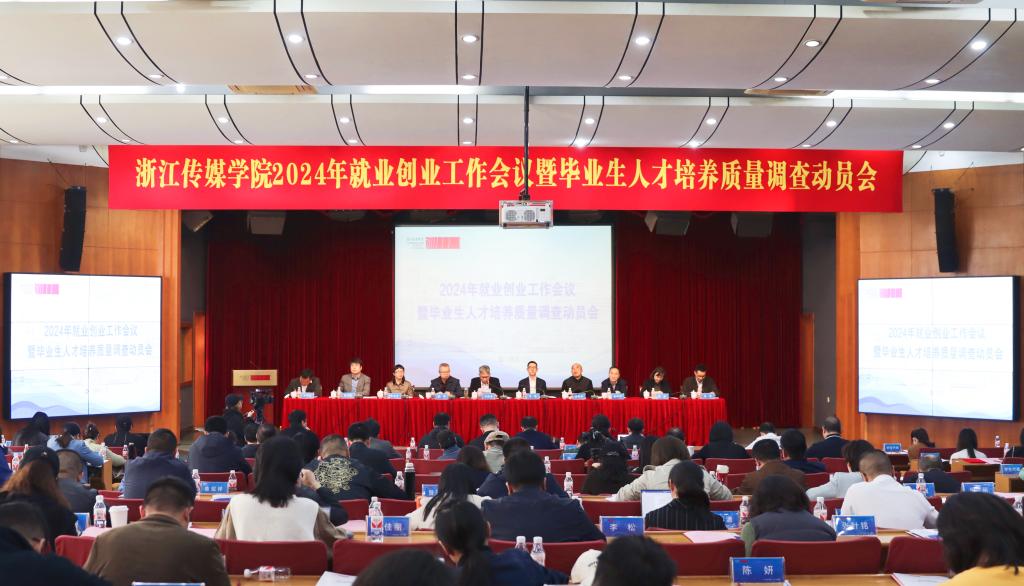为推进2024届毕业生高质量充分就业,3月27日下午,学校在杭州钱塘校区召开2024年就业创业工作会议暨毕业生人才培养质量调查动员会,总结2023年学校就业创业工作,表彰2022-2023学年就业创业工作先进集体和先进个人、2023年度传媒文化创意产业园优秀企业代表、第九届中国国际大学生创新大赛和第十四届浙江省大学生职业规划大赛获奖者,部署2024年就业创业工作和人才培养质量跟踪调查工作。