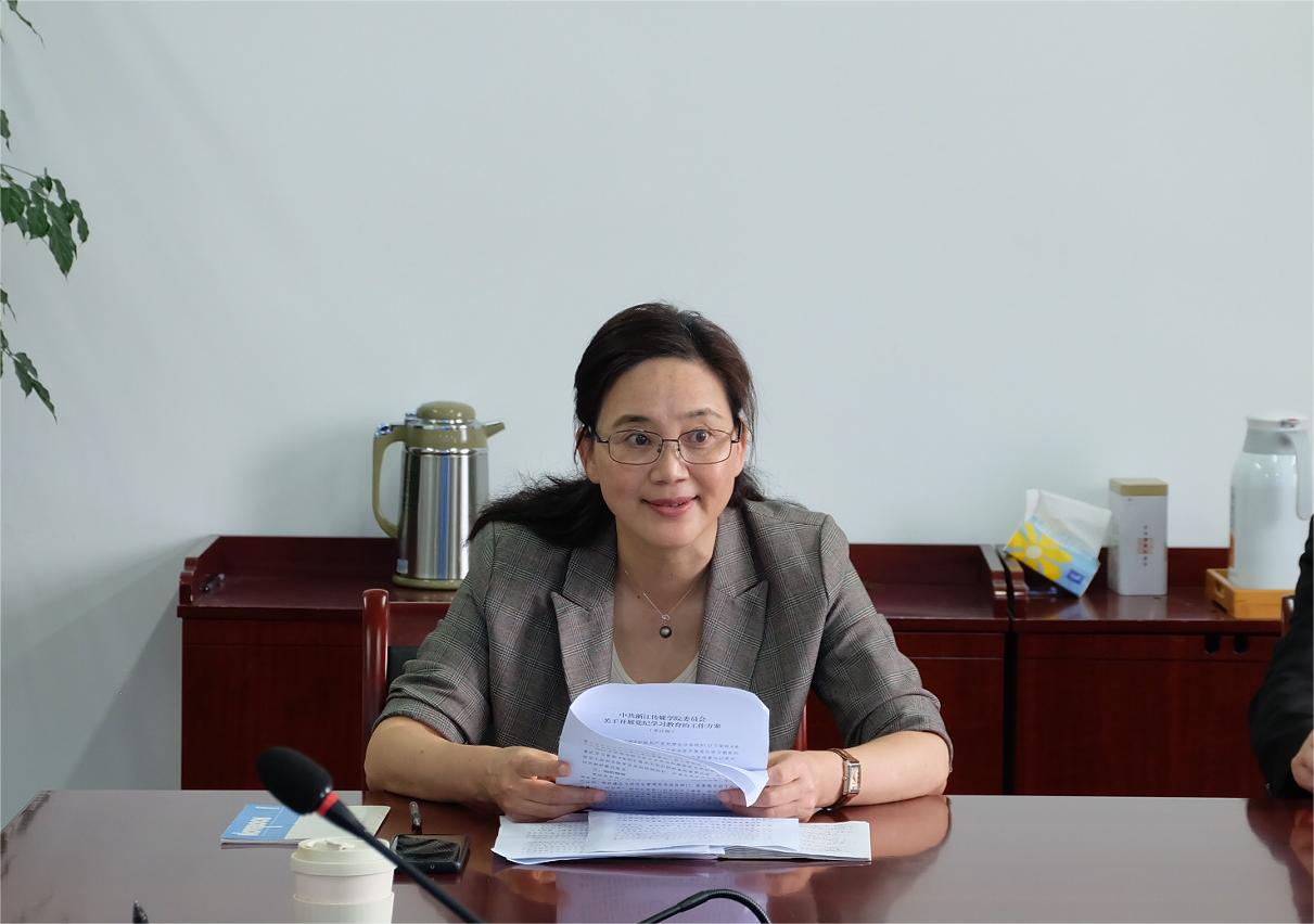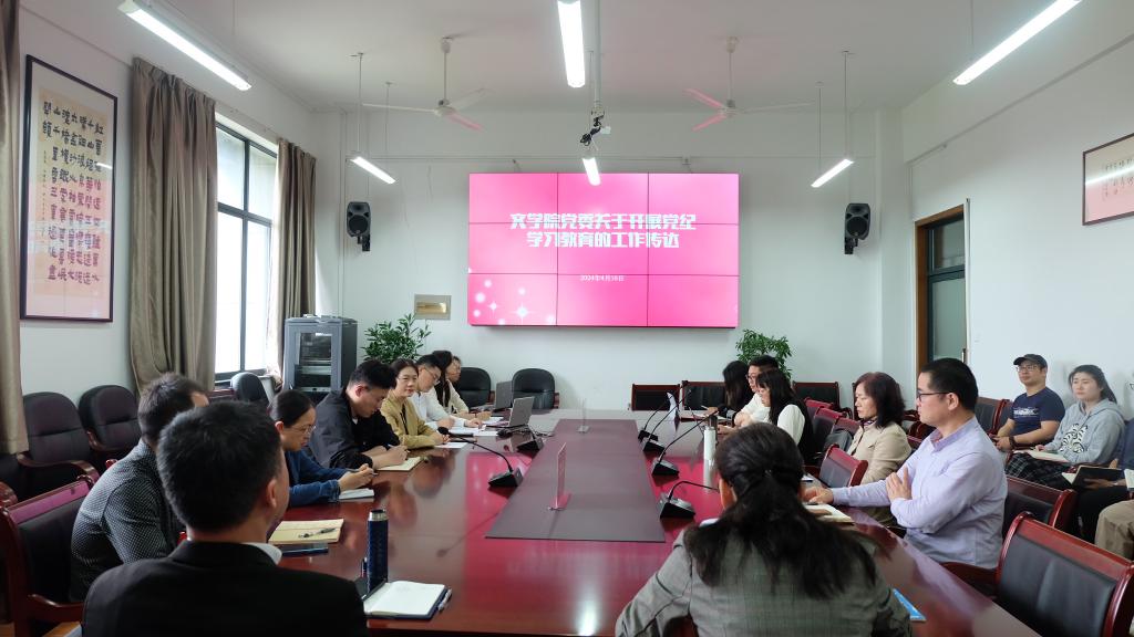 会上,文学院党委书记陈斌传达了学校党纪学习教育工作部署会的会议精神,围绕党纪学习教育的重要性、学校开展学习教育工作的总要求等进行了说明。她指出,党纪学习教育是加强党的纪律建设、推动全面从严治党向纵深发展的重要举措,学院要认真贯彻中央、省委和省委教育工委、校党委有关部署要求。她要求,领导班子要领学促学,组织开展集中学习;师生党支部要带学导学,依托“三会一课”、主题党日活动等组织全体党员认真学习;全体党员要树立纪律意识,特别是党员领导干部要示范争先,做到学纪、知纪、明纪、守纪,自觉将纪律要求内化于心、外化于行,把党纪学习教育成效转化为学校事业高质量发展的成果。
