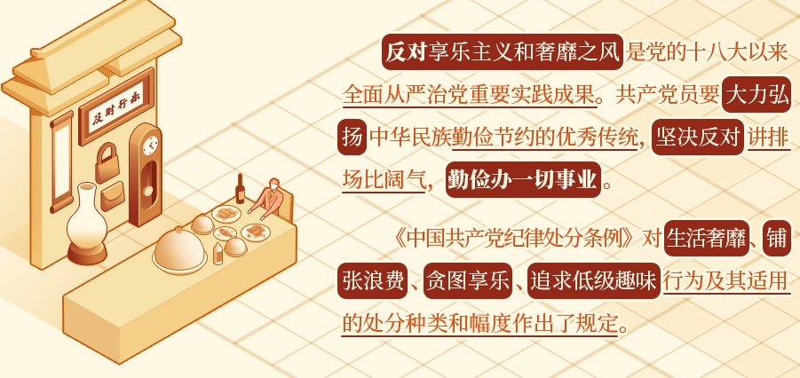 《中国共产党纪律处分条例》第一百五十条规定,生活奢靡、铺张浪费、贪图享乐、追求低级趣味,造成不良影响的,给予警告或者严重警告处分;情节严重的,给予撤销党内职务处分。