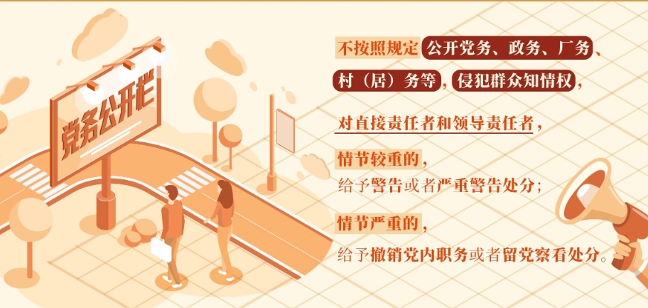 同时,应当注意本条既适用于党组织,也适用于党员。除了党务、政务、厂务、村(居)务外,还存在学校校务公开、医院医务公开等事务公开制度,均有相应的规范性文件对其内容、形式进行规范。如果不按规定公开,均属于侵犯群众知情权,需要追究党纪责任的,可以依照本条规定追究党纪责任。