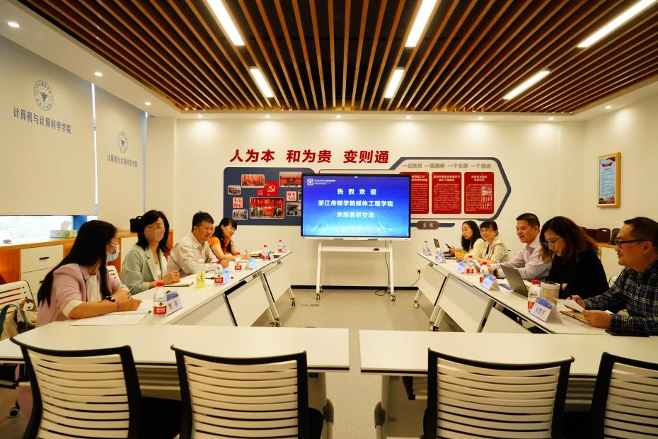为深入开展学习贯彻习近平新时代中国特色社会主义思想主题教育,以调查研究推动主题教育走深走实,着力解决高质量党建引领学院事业高质量发展的问题,5月25日,媒体工程学院党委书记姜武带领班子成员及党支部书记等一行人前往“全省高校党建工作标杆院系”及硕士点建设单位——浙大城市学院计算机与计算科学学院(以下简称计算学院)进行调研交流。