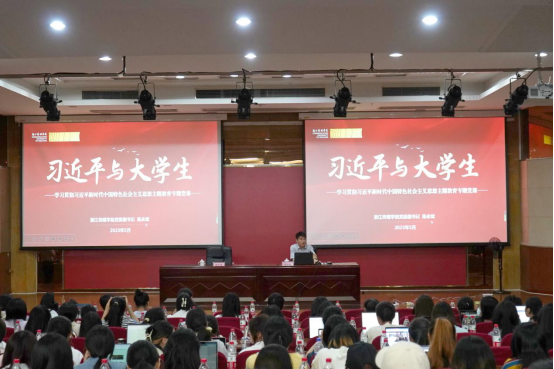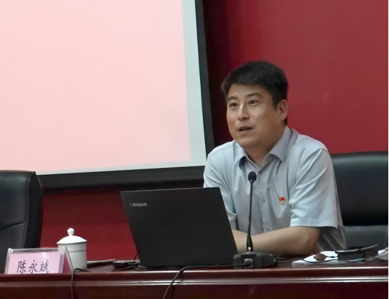 陈永斌以《习近平与大学生》为题讲授党课。他以《习近平与大学生朋友们》这本书为切入点,结合青年大学生的时代使命,引用大量数据和生动案例,从“一枝一叶总关情”“一点一滴皆期许”“一举一动践初心”三个方面讲述了习近平总书记对青年大学生的关爱和期许、做怎样的新时代青年大学生、怎样做新时代青年大学生。