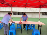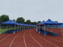 招聘会前,后勤桐乡校区的物业师傅们提前进行场地布置,在操场上将桌椅摆放到位,搭好帐篷并用沙袋压牢,总计摆放了400张桌子和近1500张塑料凳;电工师傅们将线路接线,确保招聘期间用电供应充足;保洁师傅们提前将洗干净的10多个垃圾桶放置好,对场地进行全面卫生清扫,确保场地干净整洁。