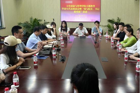6月2日下午,文化创意与管理学院主题教育毕业生代表座谈会暨“我与院长、书记面对面”活动在文管楼302会议室举行。院长张雷,党委副书记、纪委书记李松,辅导员代表和18名毕业生代表参加座谈。座谈会由党委书记林利宏主持。