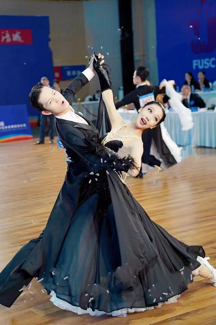我校双人项目选手吴昊和吴承敖同学在比赛中也展现出了优秀的水平。他们挑战双人项目中最具难度的五项比赛,以稳定的表现获得了大学生甲组五项S全国第八名,又在连续三天的赛程中继续拼搏,再夺大学生甲组单项华尔兹比赛第五名的佳绩,不骄不馁,勇创辉煌。