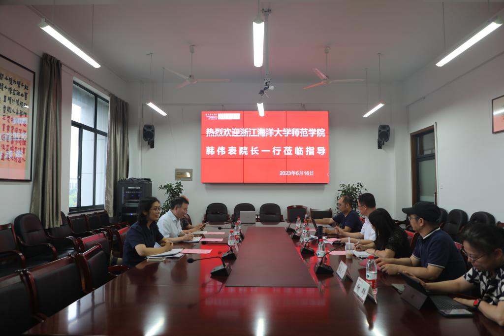 韩伟表对浙江海洋大学的办学历史、师范学院的发展现状等进行了介绍,他希望以此次学习贯彻习近平新时代中国特色社会主义思想主题教育调研为契机,深入学习和吸收先进经验和优秀做法,助力学院高质量发展。